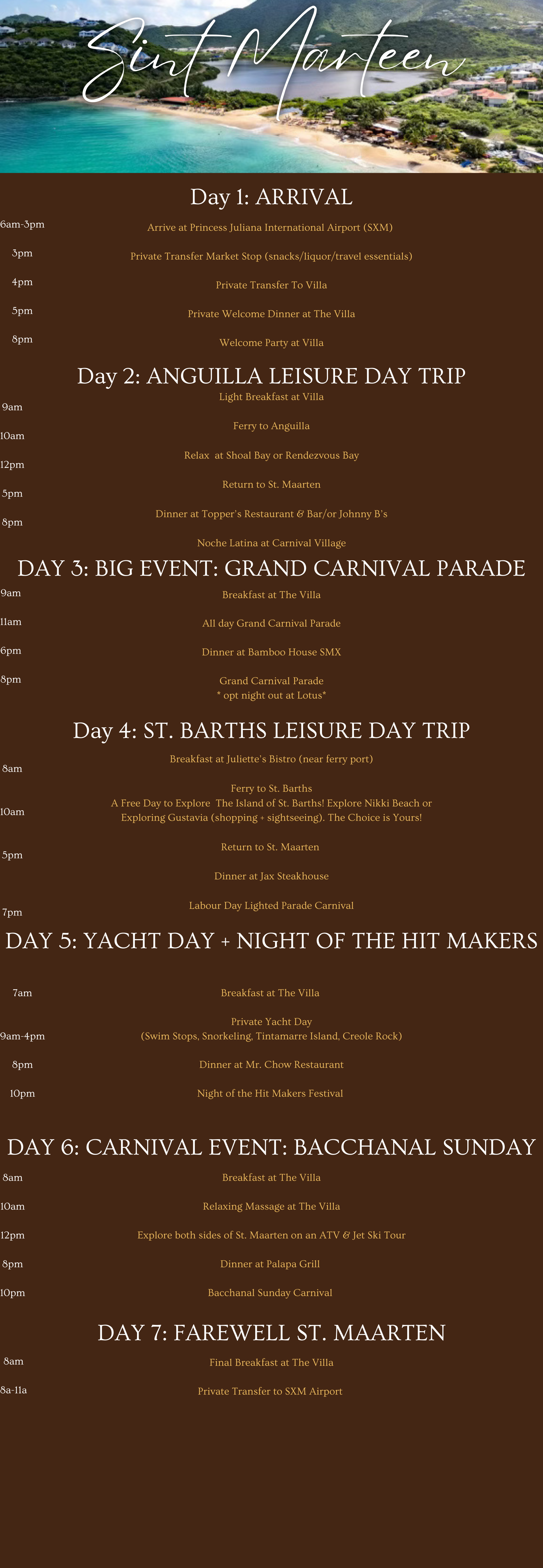 • Private transfer to Princess Juliana International Airport (SXM) for your departure.
